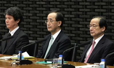 日本央行行長白川方明(中)15日在分行行長季度會(huì)議上說,央行將通過維持利率零水平以及穩(wěn)步擴(kuò)大資產(chǎn)購買計(jì)劃,來持續(xù)放松銀根。他表示,盡快克服通縮對于日本經(jīng)濟(jì)至關(guān)重要。