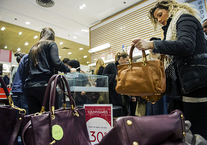 人們在法國巴黎老佛爺百貨搶購打折商品。新華社發(fā)(埃蒂安·洛朗 攝) |