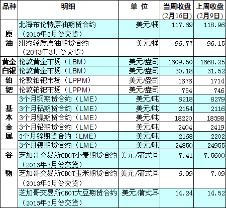 國際大宗商品期貨價格明細(xì)表[2013-02-18]
