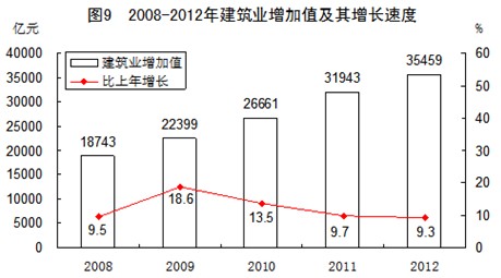 全年全社會(huì)建筑業(yè)增加值35459億元,比上年增長(zhǎng)9.3%。全國(guó)具有資質(zhì)等級(jí)的總承包和專業(yè)承包建筑業(yè)企業(yè)實(shí)現(xiàn)利潤(rùn)4818億元,增長(zhǎng)15.6%,其中國(guó)有及國(guó)有控股企業(yè)1236億元,增長(zhǎng)21.9%。