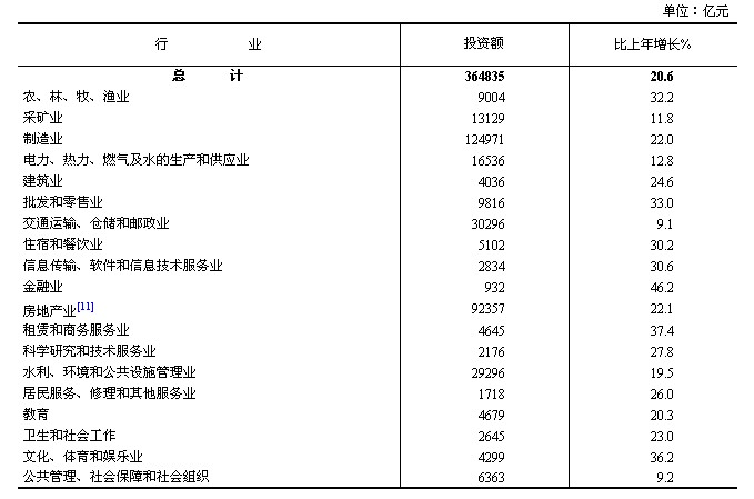 在固定資產(chǎn)投資(不含農(nóng)戶)中,第一產(chǎn)業(yè)投資9004億元,比上年增長32.2%;第二產(chǎn)業(yè)投資158672億元,增長20.2%;第三產(chǎn)業(yè)投資197159億元,增長20.6%。