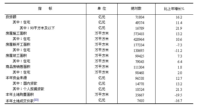 全年房地產(chǎn)開發(fā)投資71804億元,比上年增長16.2%。其中,住宅投資49374億元,增長11.4%;辦公樓投資3367億元,增長31.6%;商業(yè)營業(yè)用房投資9312億元,增長25.4%。