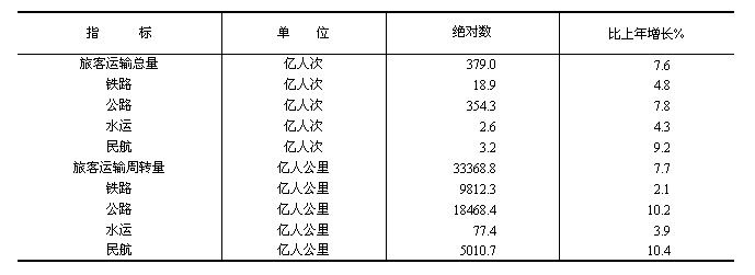全年旅客運(yùn)輸總量379億人次,比上年增長7.6%。旅客運(yùn)輸周轉(zhuǎn)量33369億人公里,增長7.7%。