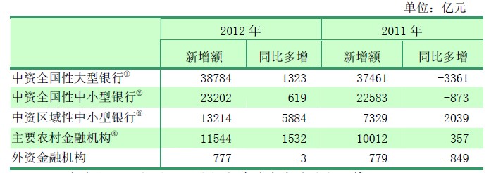 表1 2012 年分機構(gòu)人民幣貸款情況