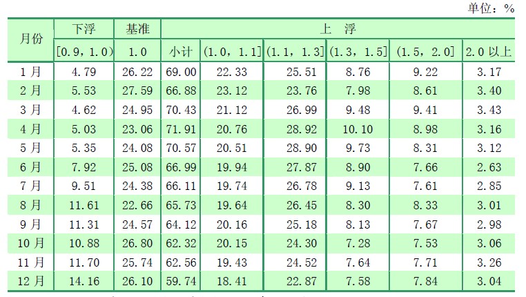 從利率浮動情況看,執(zhí)行下浮利率的貸款占比有所上升。12