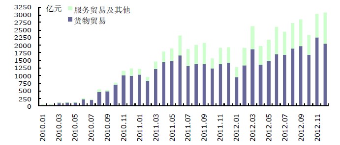 經(jīng)常項目收支繼續(xù)保持基本平衡,資本和金融項目呈現(xiàn)凈流出。據(jù)國家外匯管理局初步統(tǒng)計,2012 年經(jīng)常項目總順差2138