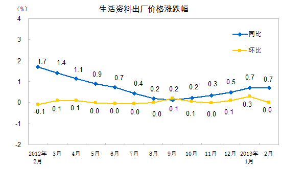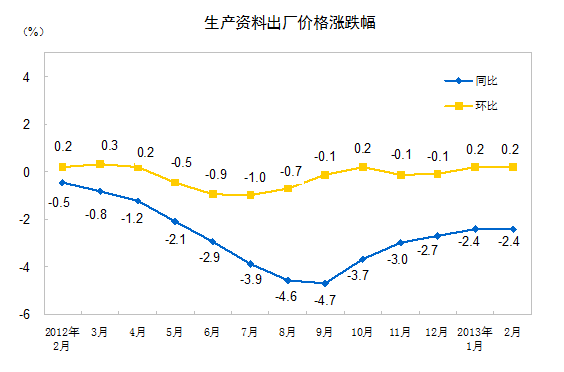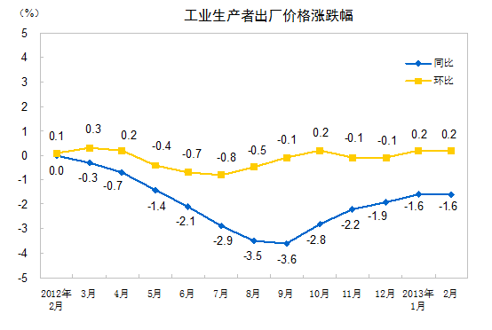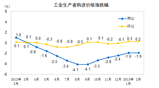 2013年2月份工業(yè)生產(chǎn)者價格變動情況