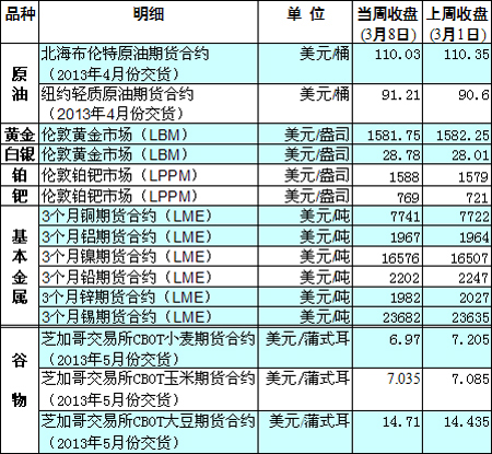 國(guó)際大宗商品期貨價(jià)格明細(xì)表[2013-03-11]