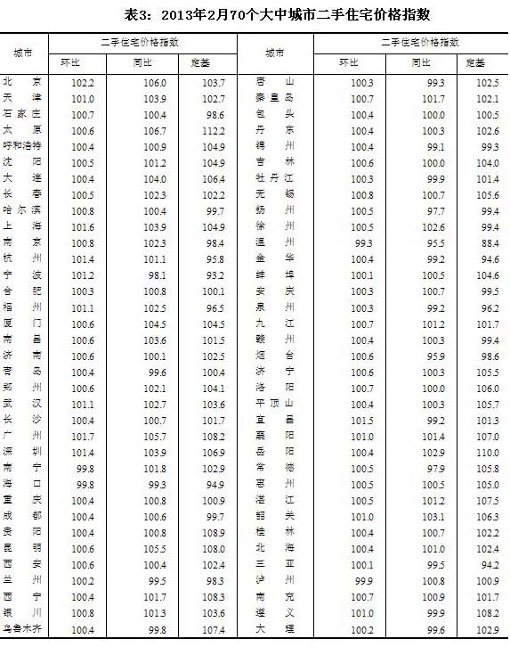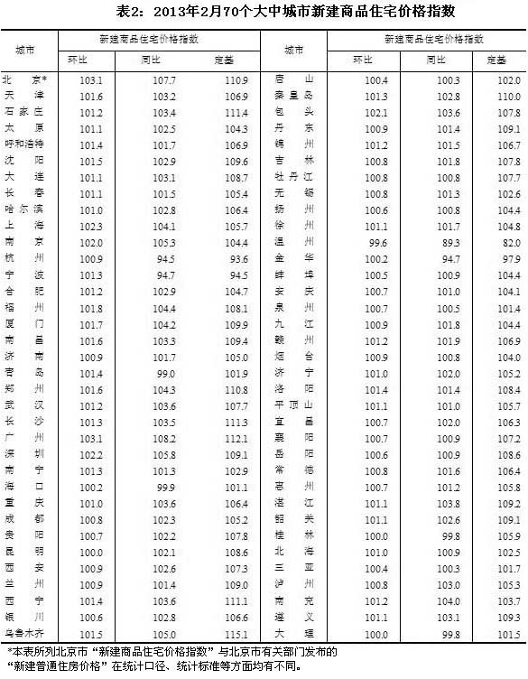 (二)與去年同月相比,70個大中城市中,價格下降的城市有18個,持平的城市有3個,上漲的城市有49個。2月份,同比價格上漲的城市中,最高漲幅為6.7%,漲幅比1月份回落的城市有2個。