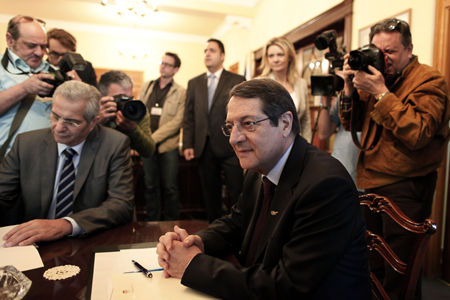 塞浦路斯議會19日晚投票否決了存款征稅議案,使得這個深陷銀行業(yè)和經(jīng)濟危機的地中海島國獲得歐元區(qū)和國際貨幣基金組織100億歐元救助的希望化為泡影。塞浦路斯總統(tǒng)尼科斯·阿納斯塔夏季斯表示尊重議會決定。塞浦路斯財長薩里斯已抵達莫斯科,與俄羅斯財長討論可能的財政援助。