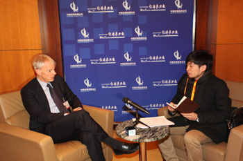 邁克爾·斯賓塞教授接受本報(bào)記者采訪。 |