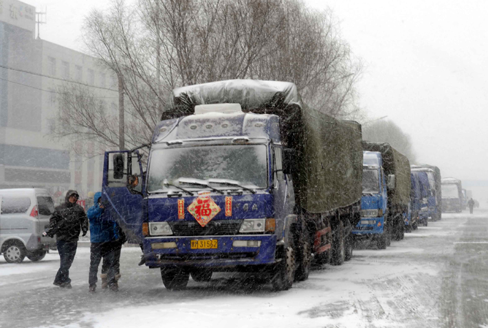 去冬今春以來,黑龍江省雪大路滑,道路不好走。雙興村子里面的路是土路,去往鎮(zhèn)里的公路雖然是水泥路,但非常窄,兩臺大車很難錯開。連續(xù)的降雪還使路面非常光滑,運糧車在有不少積雪的車轍中緩慢移動。