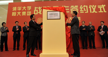 恒大集團(tuán)董事局主席許家印與清華大學(xué)校長陳吉寧共同為清華恒大研究院揭牌 |