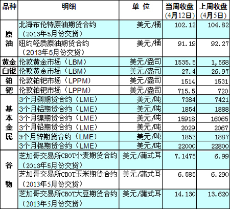 國(guó)際大宗商品期貨價(jià)格明細(xì)表[2013-04-15]