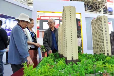 5月1日,在第五屆中國西部(銀川)房·車博覽會(huì)上,觀展者正在一處樓盤的沙盤前參觀咨詢。 當(dāng)日,第五屆中國西部(銀川)房·車博覽會(huì)也迎來了看房購房的高峰,本次博覽會(huì)共展出了區(qū)內(nèi)外30家房地產(chǎn)企業(yè)的50多個(gè)項(xiàng)目,其中不少房企打出了低價(jià)、環(huán)保、防震等促銷牌,吸引了大批觀展者前往參觀咨詢,目前,博覽會(huì)開展的前三天已經(jīng)達(dá)成房屋銷售287套左右。