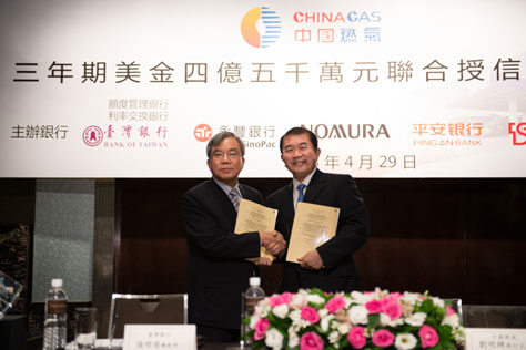 家銀行于臺北市舉行銀行團(tuán)聯(lián)合授信簽約儀式,簽訂了額度4.5億美元三年期的聯(lián)合授信協(xié)定,以用於集團(tuán)大陸地區(qū)的燃?xì)忭椖堪l(fā)展。