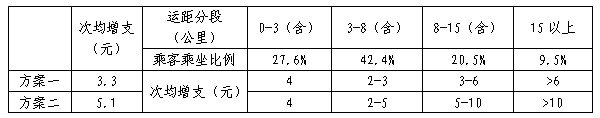 (2)對(duì)乘客影響。按照當(dāng)前平均運(yùn)距測(cè)算,方案一乘客每運(yùn)次平均增支約3.3元,增幅約13%;方案二乘客每運(yùn)次平均增支約5.1元,增幅約20%。對(duì)不同乘距乘客影響具體見下表: