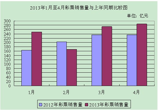 4月份,全國共銷售彩票285.61億元,比上年同期(以下簡稱“同比”)增加49.85億元,增長21.1%。其中,福利彩票機(jī)構(gòu)銷售156.11億元,同比增加22.58億元,增長16.9%;體育彩票機(jī)構(gòu)銷售129.5億元,同比增加27.27億元,增長26.7%。