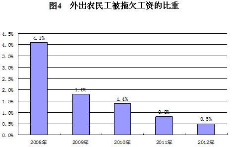 外出受雇農(nóng)民工,被雇主或單位拖欠工資的占0.5%,比上年下降了0.3個(gè)百分點(diǎn)。建筑業(yè)農(nóng)民工被拖欠工資的占1.5%,比上年下降0.4個(gè)百分點(diǎn)。從近幾年調(diào)查數(shù)據(jù)看,被雇主或單位拖欠工資的農(nóng)民工比例逐年下降,解決和遏制農(nóng)民工工資拖欠的一系列政策措施,取得明顯成效。