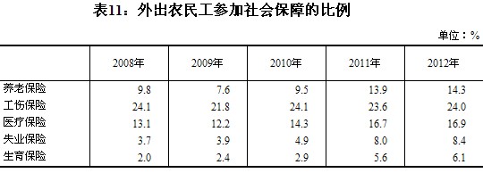 (三)外出農(nóng)民工參加社會保險(xiǎn)的水平有所提高,但總體仍然較低