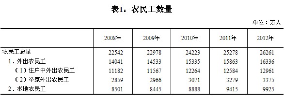 2012年全國農(nóng)民工監(jiān)測調(diào)查報(bào)告
