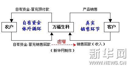 萬福生科在財務(wù)造假中,首先借用農(nóng)戶的身份證,為他們開立個人銀行賬戶,但這些賬戶卻是由萬福生科來控制。公司將自有資金打到這些個人賬戶中,冒充為“預(yù)付給農(nóng)戶的收購款”;而后,再將資金從農(nóng)戶的個人賬戶上打回給公司,冒充為“客戶的銷售回款”。