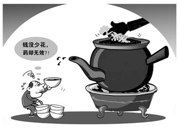 社會科學(xué)院經(jīng)濟研究所研究員、社會科學(xué)研究院中醫(yī)藥事業(yè)國情調(diào)研組執(zhí)行組長陳其廣說,不少缺乏商業(yè)道德的“現(xiàn)代中藥”生產(chǎn)企業(yè)把提取過“有效成分”“單體”的中藥原料再加工切片,以飲片方式銷售到藥材市場上去。使得許多藥廠用這種“飲片”生產(chǎn)出來的中成藥藥效大減,甚至完全失效。中醫(yī)藥事業(yè)國情調(diào)研課題組在中藥生產(chǎn)廠家和一些民營中醫(yī)機構(gòu)調(diào)研時,多次聽到這方面的強烈反映。有的民營醫(yī)院的“一把手”不得不為此親自出馬尋找合格藥材。