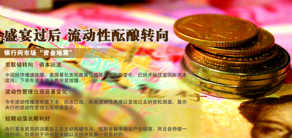 6月以來(lái),銀行間市場(chǎng)資金陡然緊俏,Shibor一再飆升。6月6日,農(nóng)發(fā)債因認(rèn)購(gòu)不足而流標(biāo),市場(chǎng)傳出兩股份制銀行資金頭寸告急。6月7日,央行取消了SLO操作。當(dāng)天下午,兩國(guó)有大行4點(diǎn)半左右同時(shí)向市場(chǎng)借錢。6月8日,隔夜Shibor利率升至9.5810%。