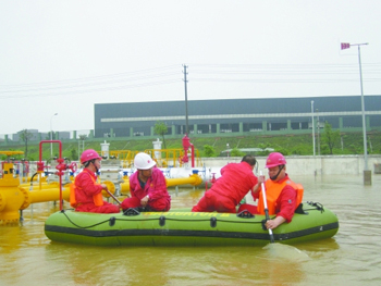 四川遭受50年一遇洪災,中國石油在川企業(yè)積極抗洪,力保油不斷氣不停,生產受控供應平穩(wěn)。圖為西南油氣田公司輸氣處仁壽作業(yè)區(qū)員工劃著橡皮艇開展生產自救。