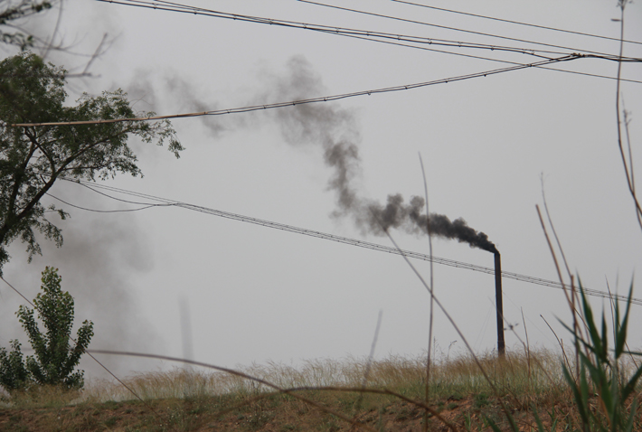 從廠門(mén)口往里看,露天工地上正揚(yáng)起滾滾灰塵,車(chē)間里還不時(shí)有黃煙排出;向空中遠(yuǎn)遠(yuǎn)望去,高爐里不斷冒出一股股黑煙,在大風(fēng)的作用下飄散升騰,不斷向下風(fēng)向的村莊里移動(dòng),空氣中可以聞到淡淡的鐵銹味。