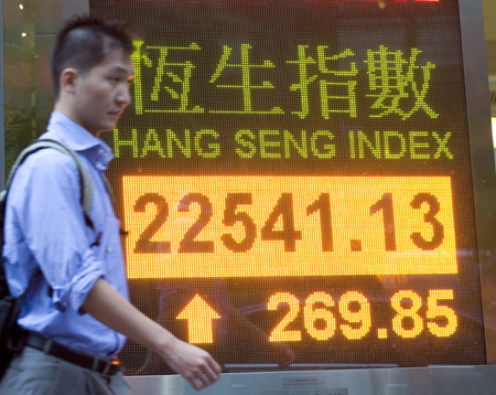 8月13日,一名行人從香港灣仔一家銀行的恒生指數(shù)電子顯示屏前走過。 當(dāng)日,香港恒生指數(shù)上漲269.85點,收報22541.13點,漲幅為1.21%。全日總成交額729億港元。