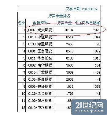 據(jù)中金所下午4點(diǎn)28分公布的數(shù)據(jù)顯示,今日股指期貨收盤后,光大期貨方面在主力合約IF1309持有的空單量新增7023手,達(dá)到史無前例的10194手,名列所有期貨公司空單持倉排名第一。