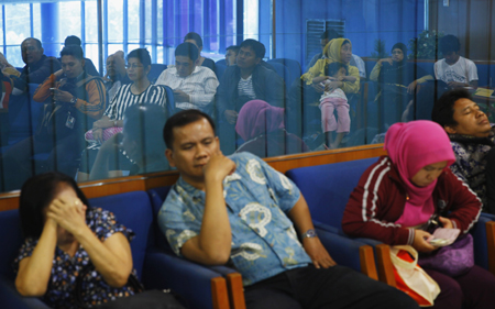 圖為當(dāng)天在印尼首都雅加達(dá),顧客排隊(duì)等待換匯。