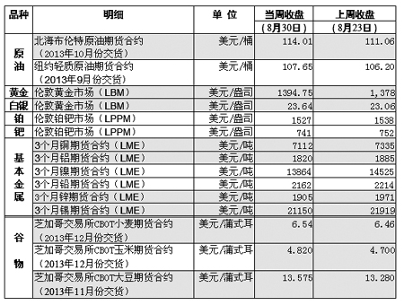 國際大宗商品期貨價格明細(xì)表[2013-09-02]
