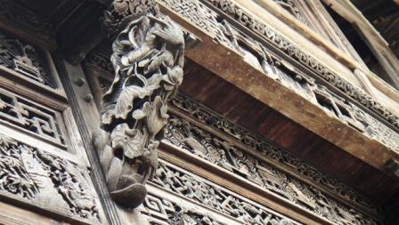 “婺源三雕”雖附屬于徽派建筑,但它冶美學(xué)、力學(xué)、數(shù)學(xué)、歷史學(xué)、生態(tài)學(xué)于一爐,具有深刻的文化內(nèi)涵和極高的藝術(shù)價值!版脑慈瘛比〔氖謬(yán)格,磚一定要用本地產(chǎn)的水磨青磚,石則須用安徽的“黔縣黑”或浙江的青田石、淳安的茶青石,大木雕一定要用百年以上的楓、樟、柏、櫧等,細木雕則用紋理細密的楠、棗、楊、桃等。各種刀法是“婺源三雕”的關(guān)鍵所在,其特點在于不拘一法,混合并用,使作品達到空靈剔透的效果,故而圓雕、浮雕、淺雕、深雕和透雕極為常見。