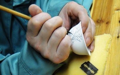 青花繪畫裝飾是一項精細且富于藝術創(chuàng)造性的工作,對瓷工的技能有著很高的要求。傳統(tǒng)的青花瓷繪技藝分為畫面設計、過稿、勾線、分水等幾個步驟。
