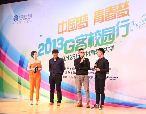 9月25日,“中國夢 青春夢——2013G客G拍原創(chuàng)視頻大賽”北京站校園活動,在中國傳媒大學(xué)正式啟動,這也是本年度G客G拍原創(chuàng)視頻大賽的重點活動之一。中國移動2013G客G拍原創(chuàng)視頻大賽分為六大板塊:作品征集、G客G拍校園行、新媒體展映、手機(jī)院線發(fā)行、作品評選、G客盛典。截止到11月15日之前,感興趣的觀眾均可以通過互聯(lián)網(wǎng)(大賽官網(wǎng)www.gkgp.com)或新浪微博(官微:G客G拍)上傳作品,參與比賽。