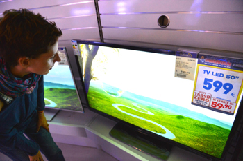 一位意大利消費(fèi)者正在關(guān)注海爾智能電視!⊥跣菢/攝 |