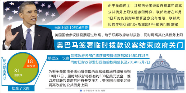 圖表:奧巴馬簽署臨時撥款議案結束政府關門 新華社記者 張勛 編制