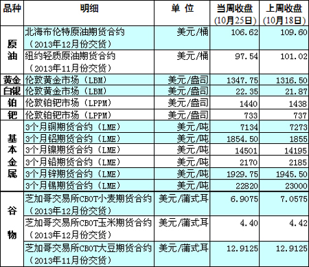 國(guó)際大宗商品期貨價(jià)格明細(xì)表[2013-10-28]