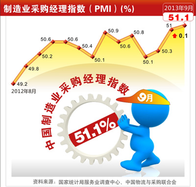 多家機(jī)構(gòu)預(yù)測(cè),于今日公布的10月制造業(yè)采購(gòu)經(jīng)理人指數(shù)(官方PMI)將連續(xù)第13個(gè)月位于擴(kuò)張區(qū)間,而且可能不會(huì)低于9月的51.1%。在十八屆三中全會(huì)即將召開(kāi)之際,海內(nèi)外主流機(jī)構(gòu)紛紛表態(tài),看好中國(guó)經(jīng)濟(jì)后期走勢(shì)。