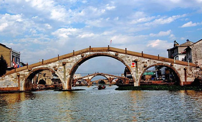 在雙林古鎮(zhèn)區(qū)中,以“三橋”為代表的橋文化景觀具有較高的歷史價(jià)值和文化品位。據(jù)《東西林匯考》記載,雙林古鎮(zhèn)歷史上曾有橋125座,其中始建于宋代4座,元代1座,明代13座,清代35座。雖經(jīng)滄桑變遷,大部分已廢圯湮沒(méi),但至今仍不失為“江南古橋留存集中區(qū)”(《中華文物古跡旅游·古代橋梁》之語(yǔ)),僅鎮(zhèn)區(qū)尚有21座之多。其中鎮(zhèn)北的萬(wàn)元、化成、萬(wàn)魁三橋始建于明代以前,均為市級(jí)文保單位。橋長(zhǎng)50米左右,且空間水平相距不到360米,為江南僅有。