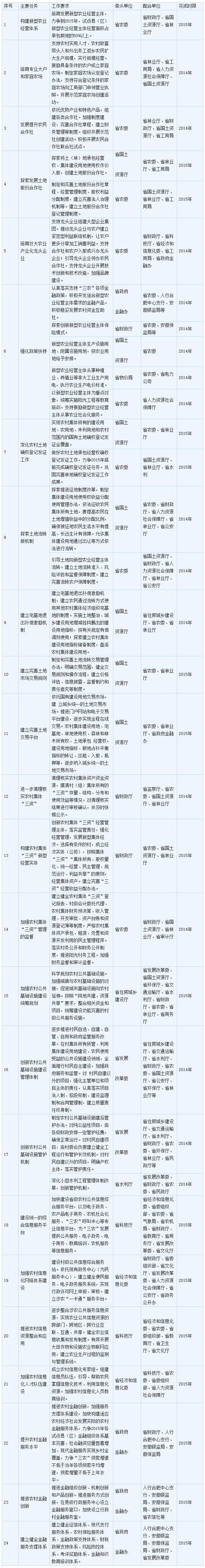 【安徽省人民政府發(fā)布的農村綜合改革示范試點主要工作任務分解表】