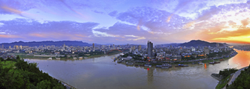 鐘靈毓秀的國際生態(tài)山水園林城市。這里,有著一流的水質(zhì)、一流的空氣,是長江上游的生態(tài)福地。這里,四季分明,雨量充沛,氣候溫潤,是全球同緯度地區(qū)水熱資源配合最好的地域之一。這里,三江九河景色迷人,600多條大小溪河呈網(wǎng)狀分布。這里,物種豐富多樣,有動物資源近千種,國家一、二級珍稀保護(hù)動物51種,已知高等植物5000多種,國家級珍稀瀕危保護(hù)植物15種,是“植物王國”、“香料之都”、“藥物寶庫”、“茶葉世界”、“天然竹!,森林覆蓋率達(dá)到41.51%,是長江上游生態(tài)屏障的重要支撐。這里,三江環(huán)繞、三塔聳立、三山環(huán)抱,山水在城中、城在山水中,江、山、塔、橋交相輝映,流光溢彩,書寫著“靈山秀水總宜賓、酒都風(fēng)情最宜賓”的動人畫卷。