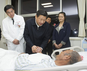 習近平在青島大學附屬醫(yī)院黃島分院看望慰問傷員 |