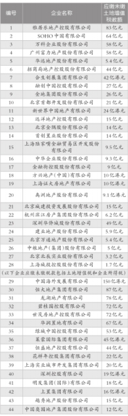 部分存在巨額應(yīng)繳未繳土地增值稅的上市房企名單 (數(shù)據(jù)截至2012年12月31日)