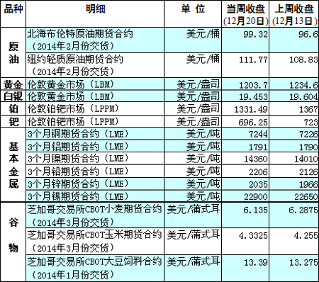 國際大宗商品期貨價格明細(xì)表[2013-12-23]