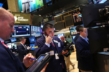 在美聯(lián)儲縮減量化寬松規(guī)模(QE)靴子落地后,美股18日卻大幅上漲,道指和標(biāo)普指數(shù)收盤雙雙創(chuàng)下歷史新高。圖為美國證交所內(nèi)交易員進(jìn)行交易!