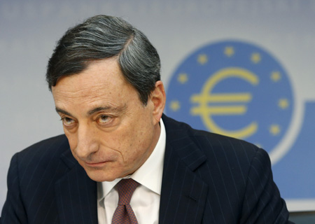 圖為德拉吉在于德國法蘭克福召開的歐洲央行貨幣政策會議后的發(fā)布會上發(fā)言。