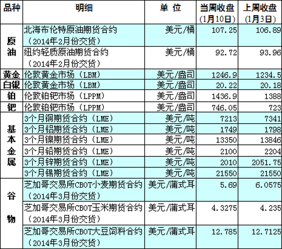 國際大宗商品期貨價格明細表[2014-1-13]